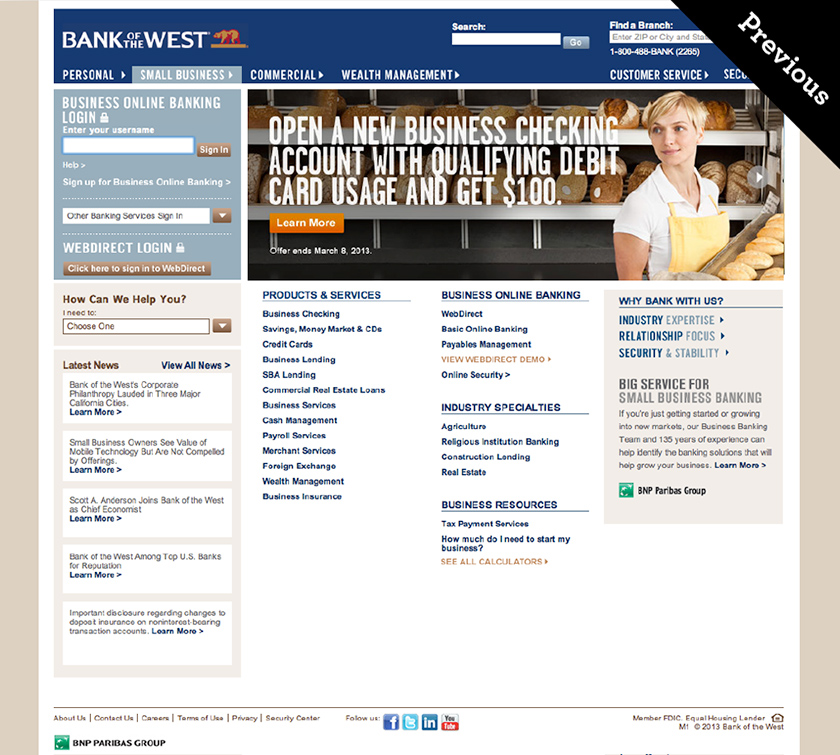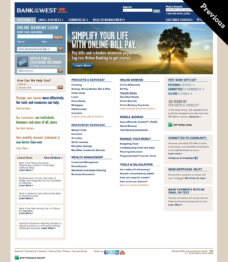Seeking to transform its brand, Bank of the West, a wholly owned subsidiary of BNP Paribas, invested in its digital channels product offering. In order to maintain a consistent and intuitive customer experience, Bank of the West brought on Andrew Gold to spearhead the redesign of its digital channels by managing the digital agency relationships and building an internal UX team.