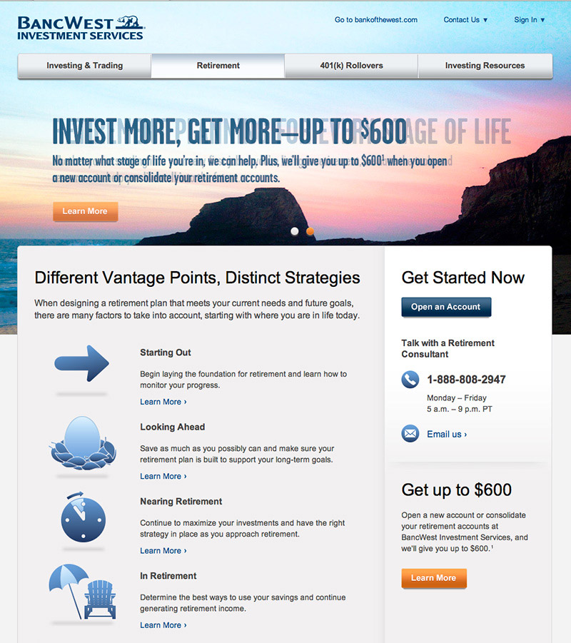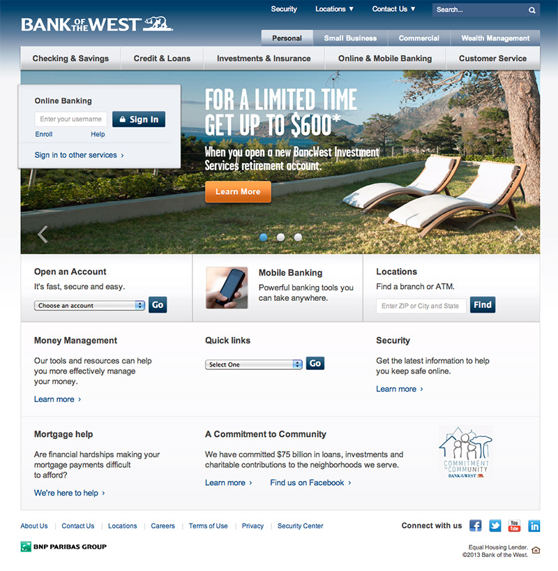 In his dual role as Creative Director and User Experience Director, Andrew partnered closely with the product teams — digital channels, engineering, vendors and agencies. He managed the relationships and directed the design while concurrently hiring an internal user experience team. Working with digital channels leadership, he quickly set a vision for the Bank of the West user experience.